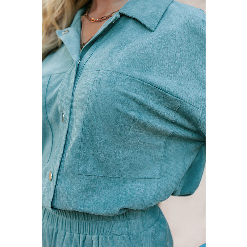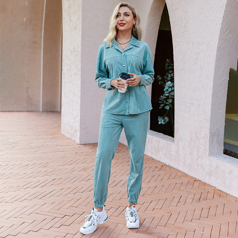 Cet ensemble deux-pièces pour femme est conçu dans un tissu doux façon velours, offrant une sensation agréable et un look moderne. Il est idéal pour les sorties quotidiennes ou un style décontracté chic.